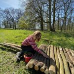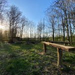 für viele unentdeckt schmiegt sich unsere schöne Feuerstelle in die Natur des Parcours. Von Position 6 und 7 können Besucher einen Blick riskieren – ab heute fällt es sicher auf! Denn rund um die Feuerstelle ist so Einiges entstanden! Drei große Sitzbänke, ein überdachtes Holzlager und zwei große Bartresen! Das Beste: dafür verwendeten wir fast ausschliesslich das Holz von umgefallenen Bäumen von Position 8 und 11. Nur die massiven Eichentischplatten erhielten wir von einem befreundeten Sägewerk. Die beiden Positionen im Parcours sind dabei super schön geworden. Eine besondere Freude war es den Dialog zu führen zwischen "dies soll wild bleiben" und "jenes kommt aufgeräumt noch schöner zur Geltung". Die Kunst der Reduzierung war gefragt 🙂
